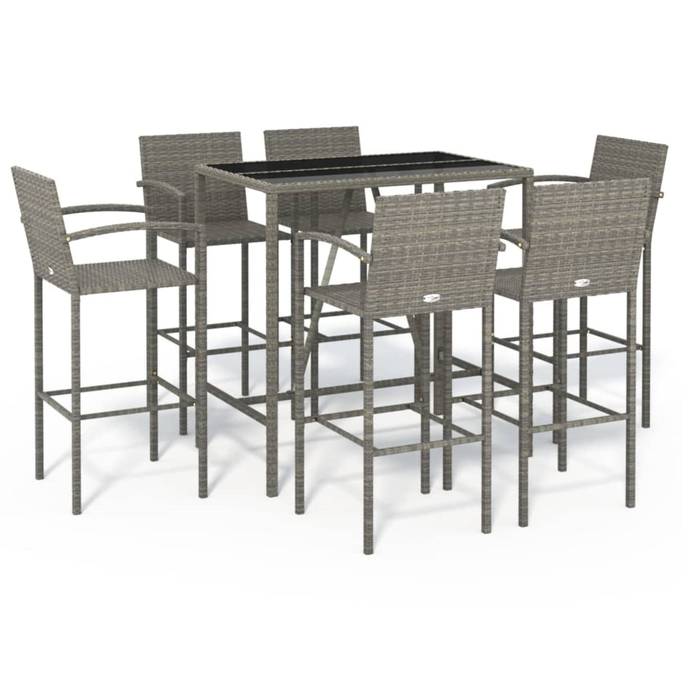 Vidaxl 7 Piece Patio Bar Set Gray Poly Rattan
