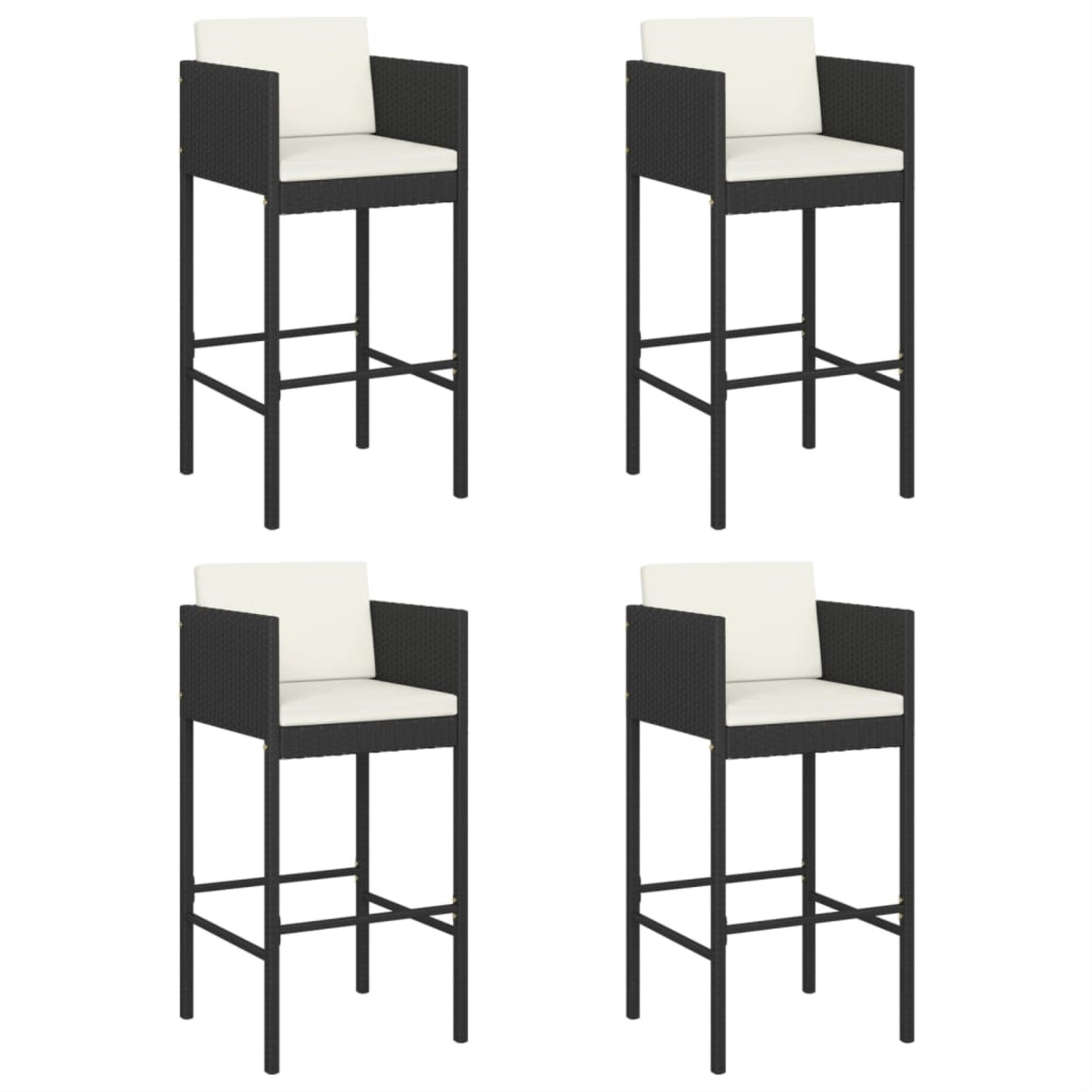 Vidaxl Bar Stools 4 Pcs With Cushions Black Poly Rattan