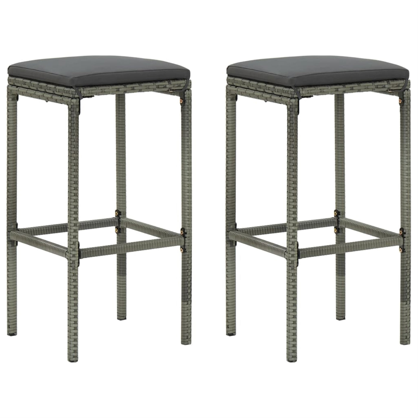 Vidaxl Bar Stools With Cushions 2 Pcs Gray Poly Rattan