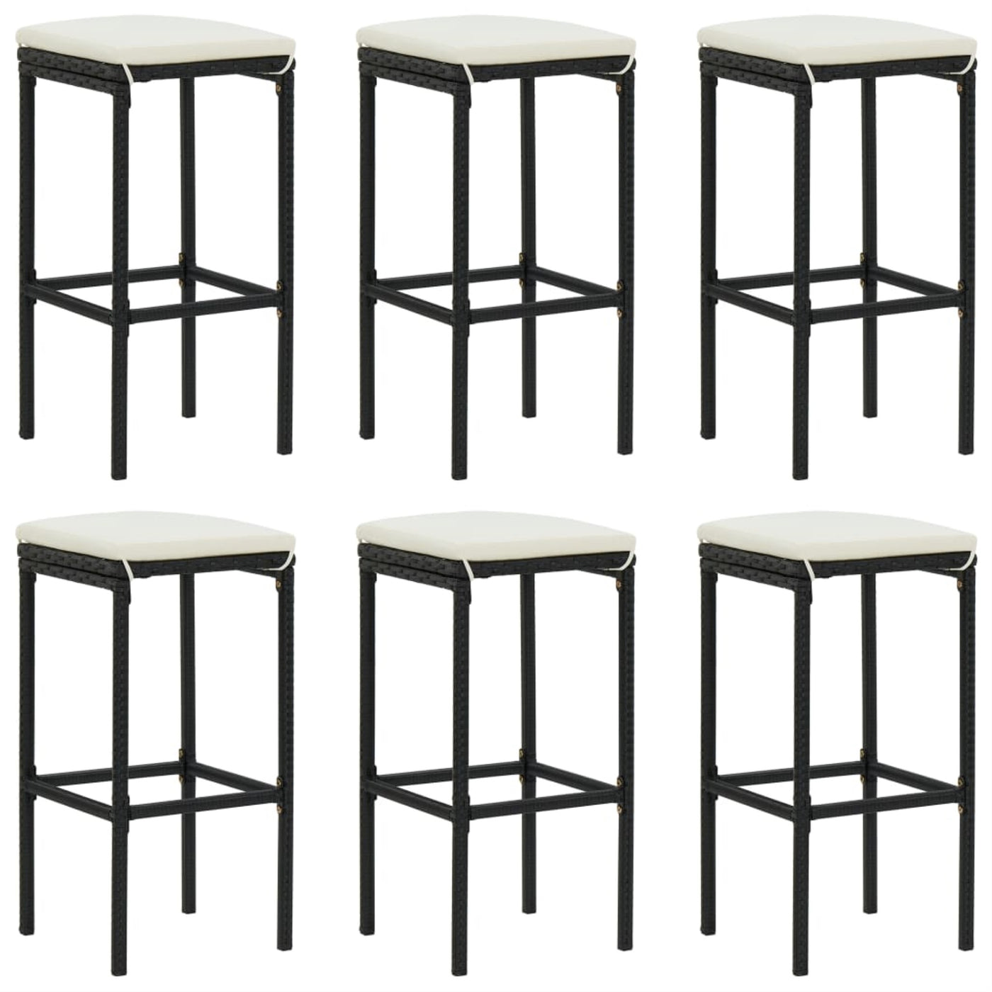 Vidaxl Bar Stools With Cushions 6 Pcs Black Poly Rattan