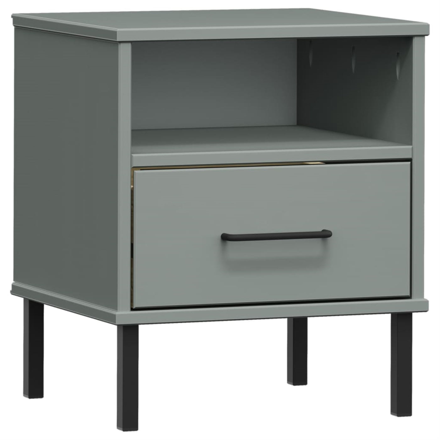 Vidaxl Bedside Cabinet With Metal Legs Gray Solid Wood Pine Oslo
