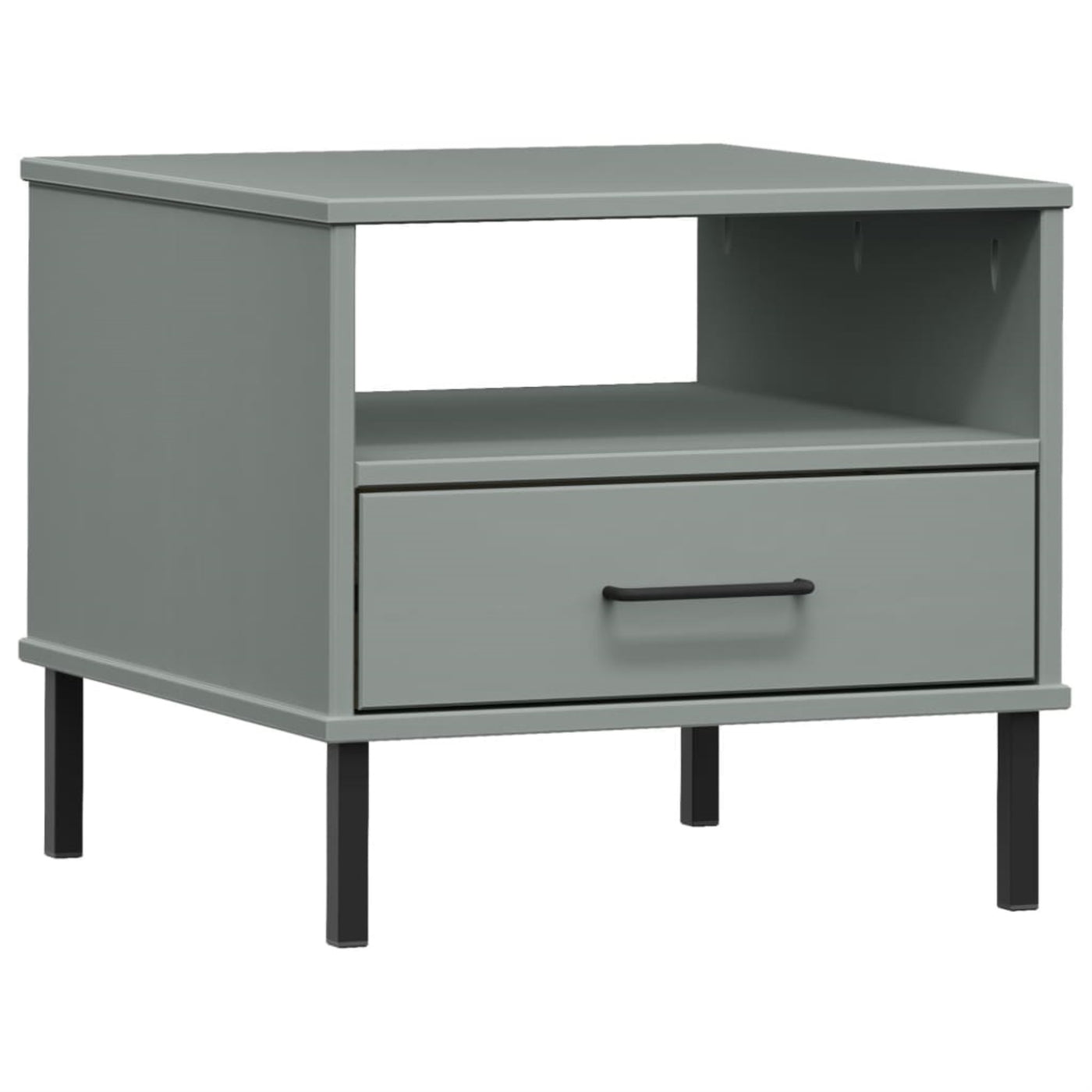 Vidaxl Bedside Table With Metal Legs Gray Solid Wood Pine Oslo