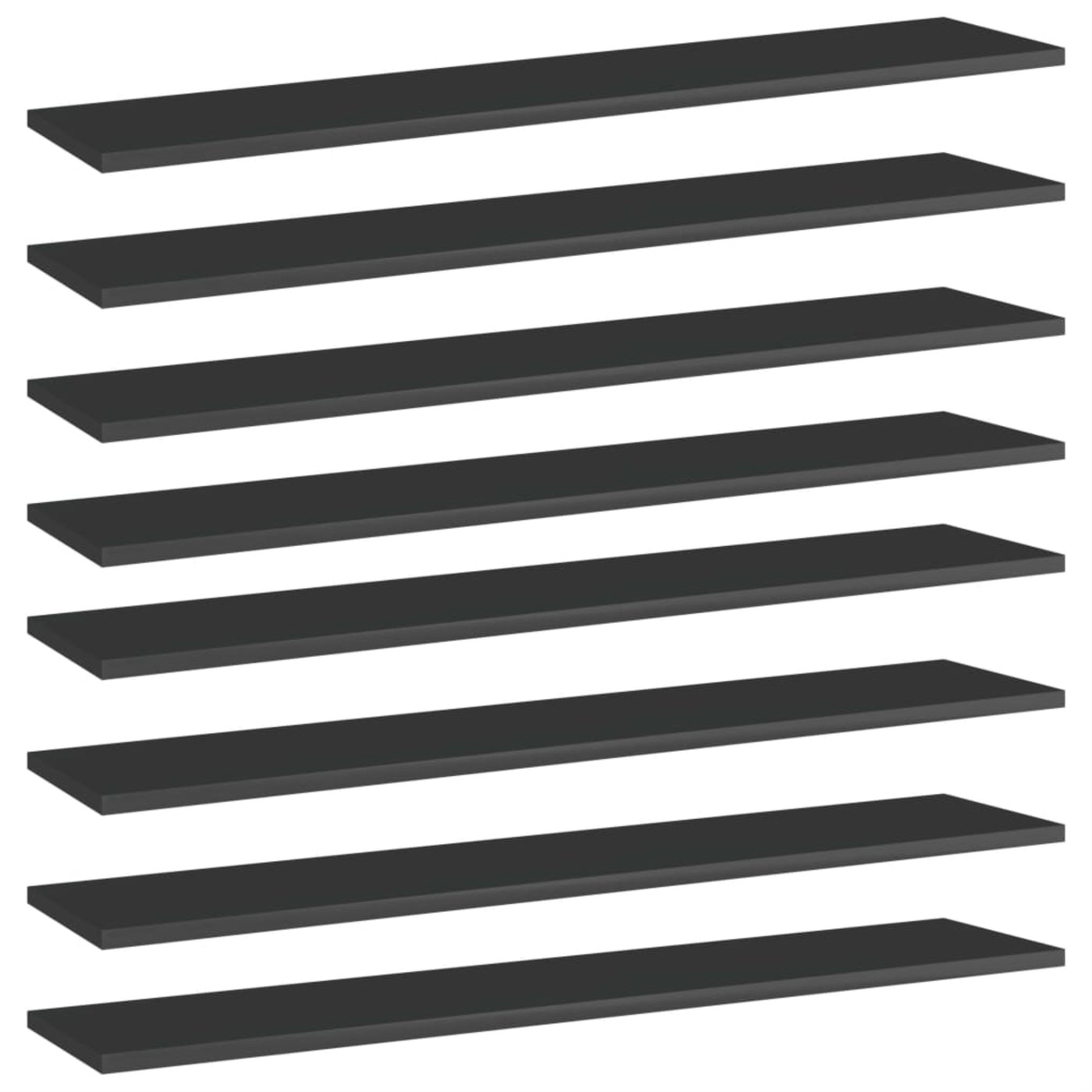 Vidaxl Bookshelf Boards 8 Pcs High Gloss Black 39.4'X7.9'X0.6' Chipboard
