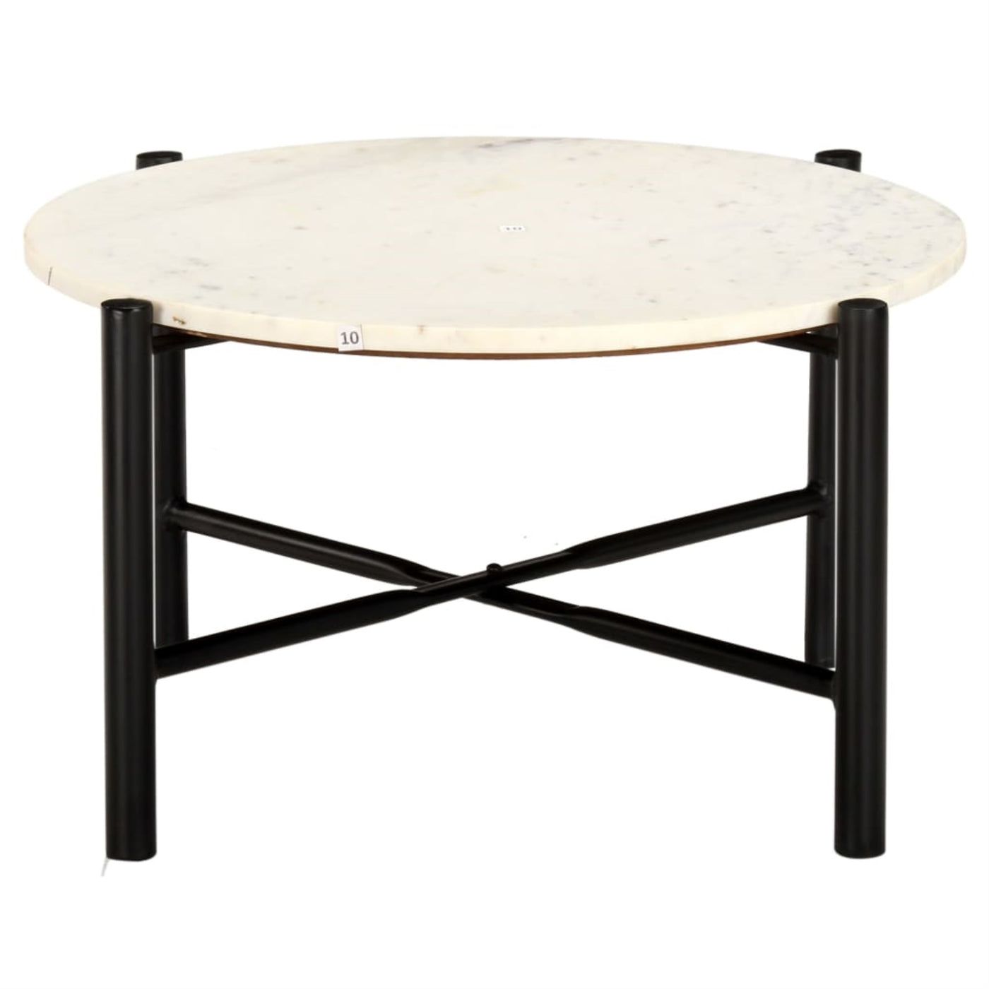 Vidaxl Coffee Table White 23.6'X23.6'X13.8' Real Stone With Marble Texture