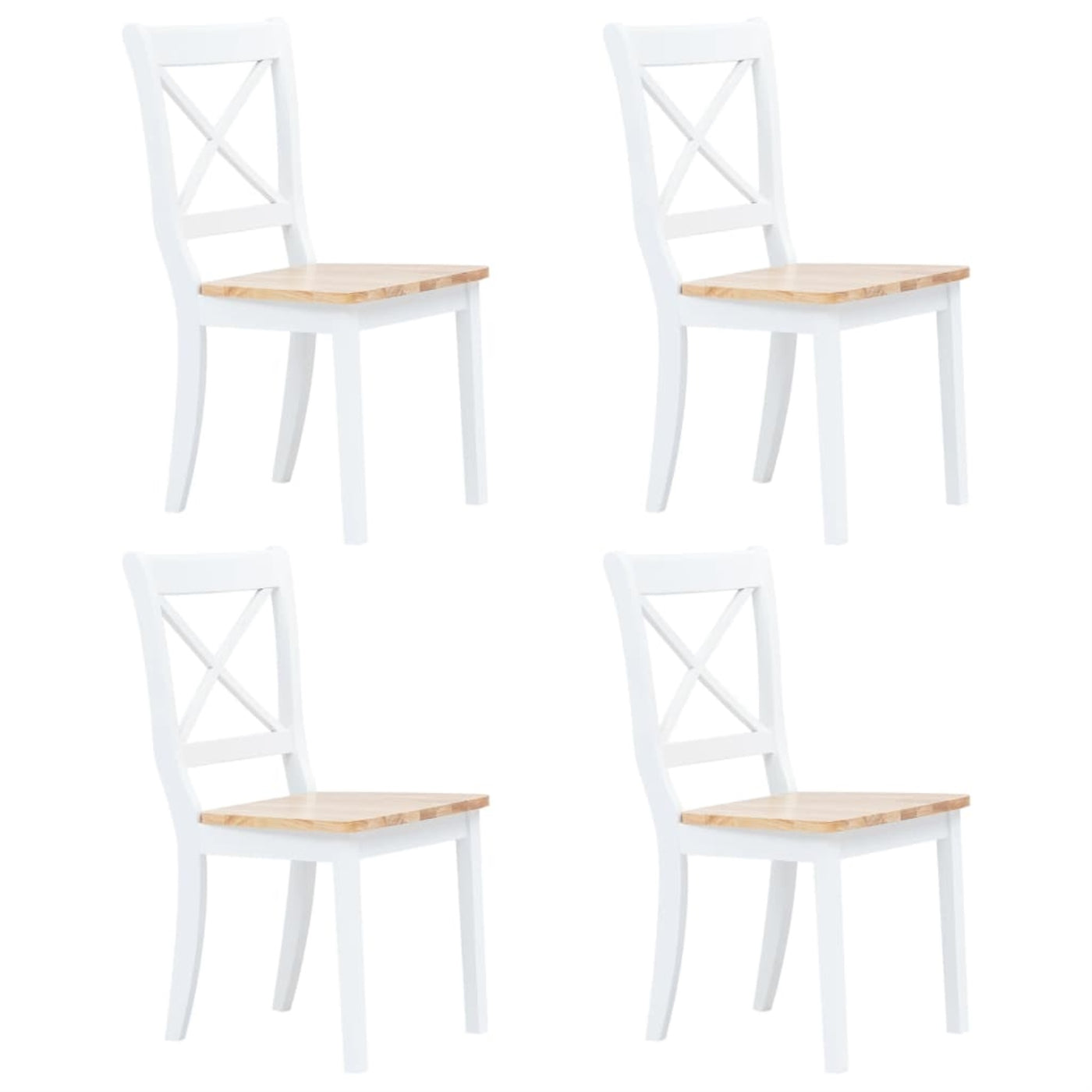 Vidaxl Dining Chairs 4 Pcs White And Light Wood Solid Rubber Wood