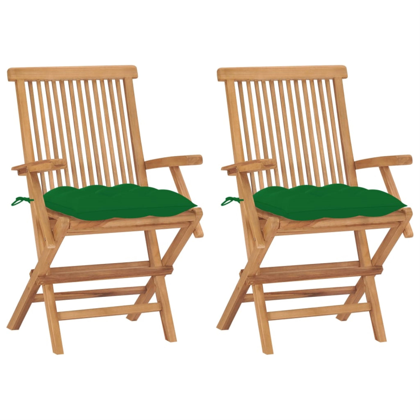Vidaxl Garden Chairs With Green Cushions 2 Pcs Solid Teak Wood