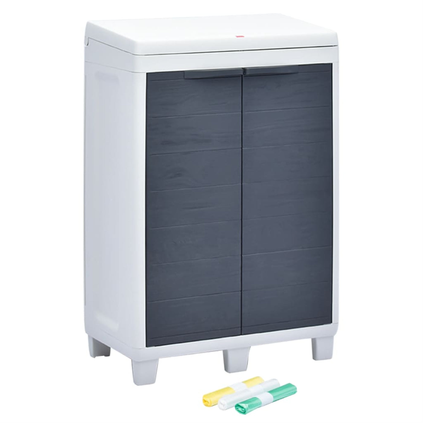 Vidaxl Garden Dustbin With 3 Bags Dark Gray 25.6'X15'X40.2' - 45672, This Garden Dustbin Is The Ideal Choice To Sort And Dispose Your Waste. Our Recycling Trash Bin Is Made Of Plastic, Which Makes It Washable, Weather Resistant And Easy To Clean. It Includes 3 Bag Holders For Easy Waste Separation And Features A Practical Storage Shelf. Thanks To Its Frontal Slanted Running Lid, Water Drains Quickly In Outdoor Areas. You Can Effortlessly Open Or Close The Lids By Pressing The Push Button On Top. The Rubbish Bin Doors Are Lockable (Lock Not Included). Thanks To A Simple Plug-In System, The Mounting Process Is Tool Free.