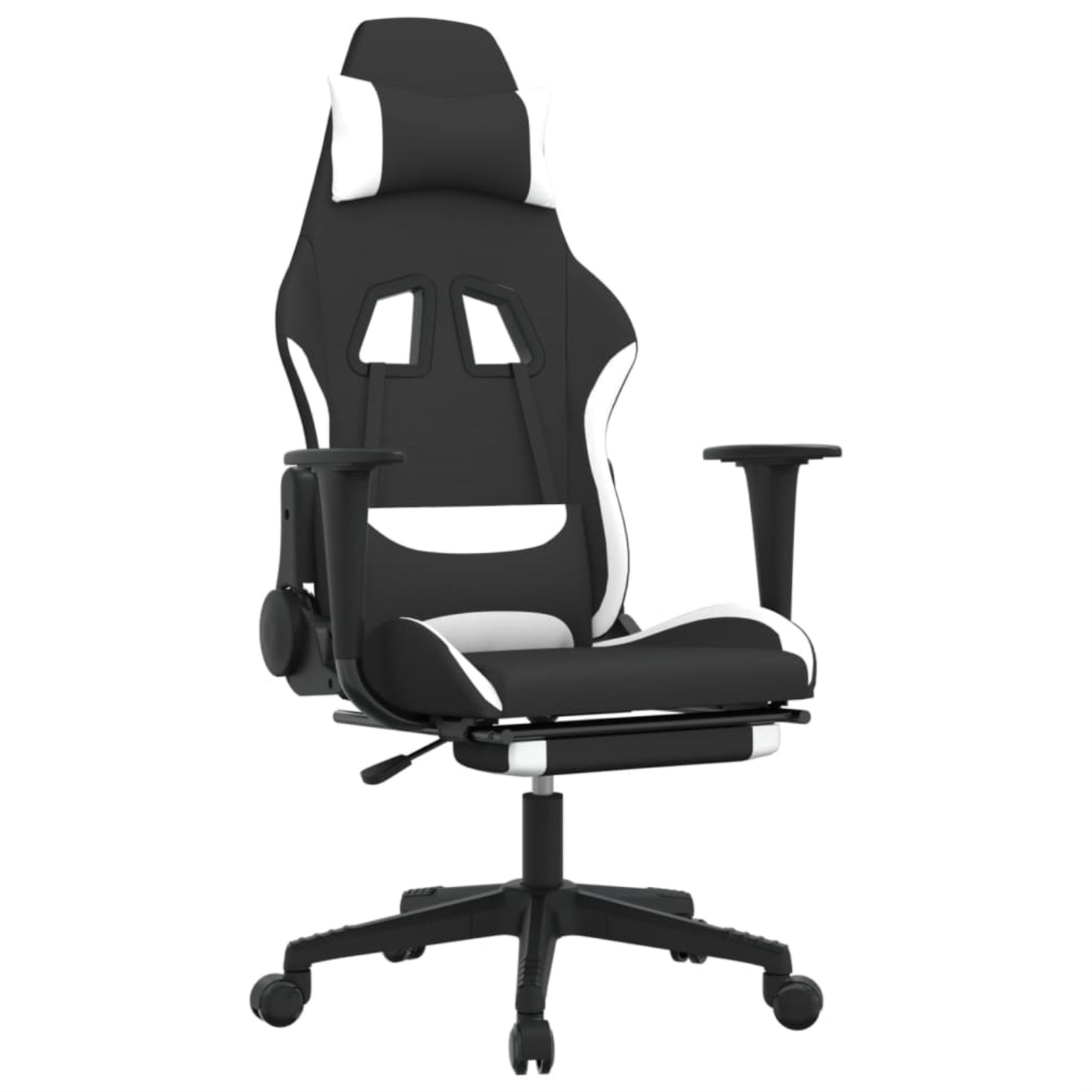 Vidaxl Massage Gaming Chair With Footrest Black And White Fabric