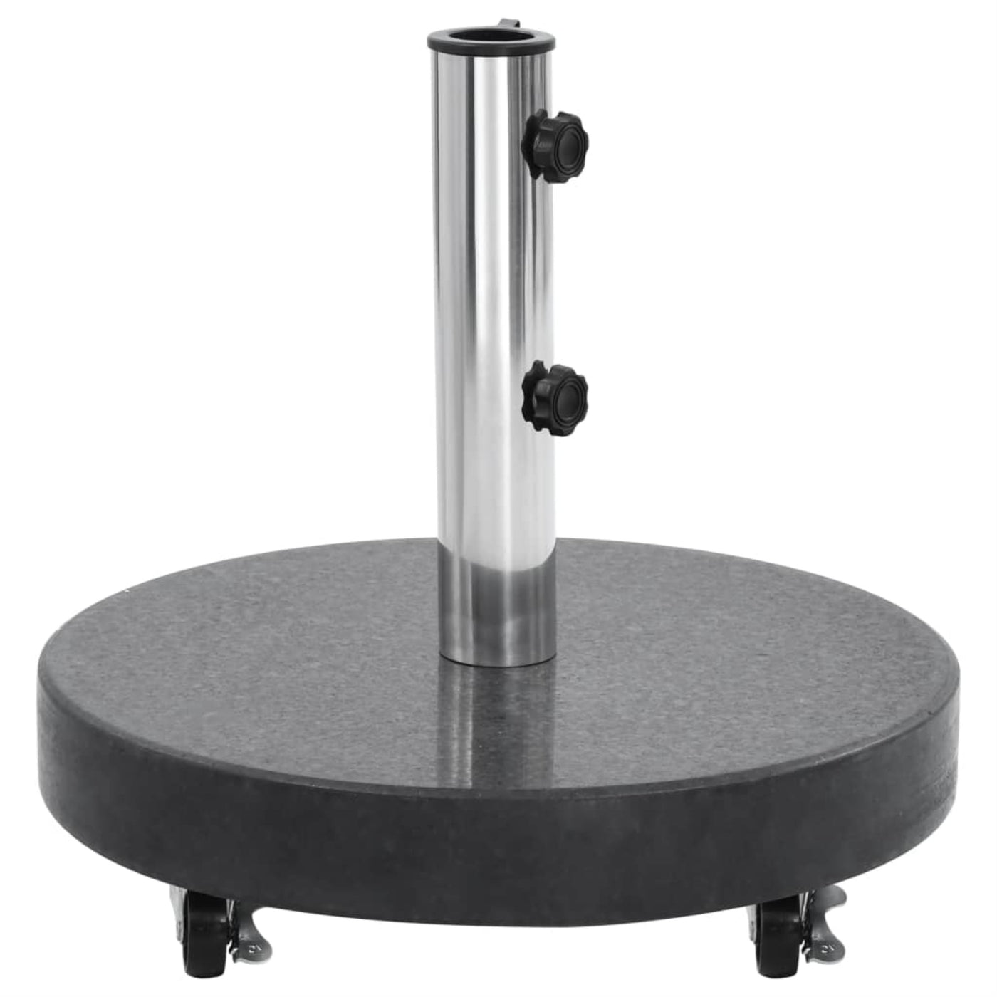 Vidaxl Parasol Base Granite 66.1 Lb Round Black - 48564, Our Solid Granite Parasol Base Provides A Firm And Sturdy Base For Holding Your Umbrella And Keeping It From Tipping Over Or Being Blown Away. Made Of Strong Granite And With A Weight Of 30 Kg, This Umbrella Weight Plate Is Extremely Stable And Ensures Your Parasol Stand Still Even In Windy Weather. The Umbrella Holder Has 2 Locking Bolts To Keep The Umbrella Pole In Place. One Adapter Is Included, Making The Parasol Base Holder Suitable For Parasol Poles With Diameters Of 38/48 Mm. Additionally, With 4 Castors, The Parasol Base Can Be Moved Freely.