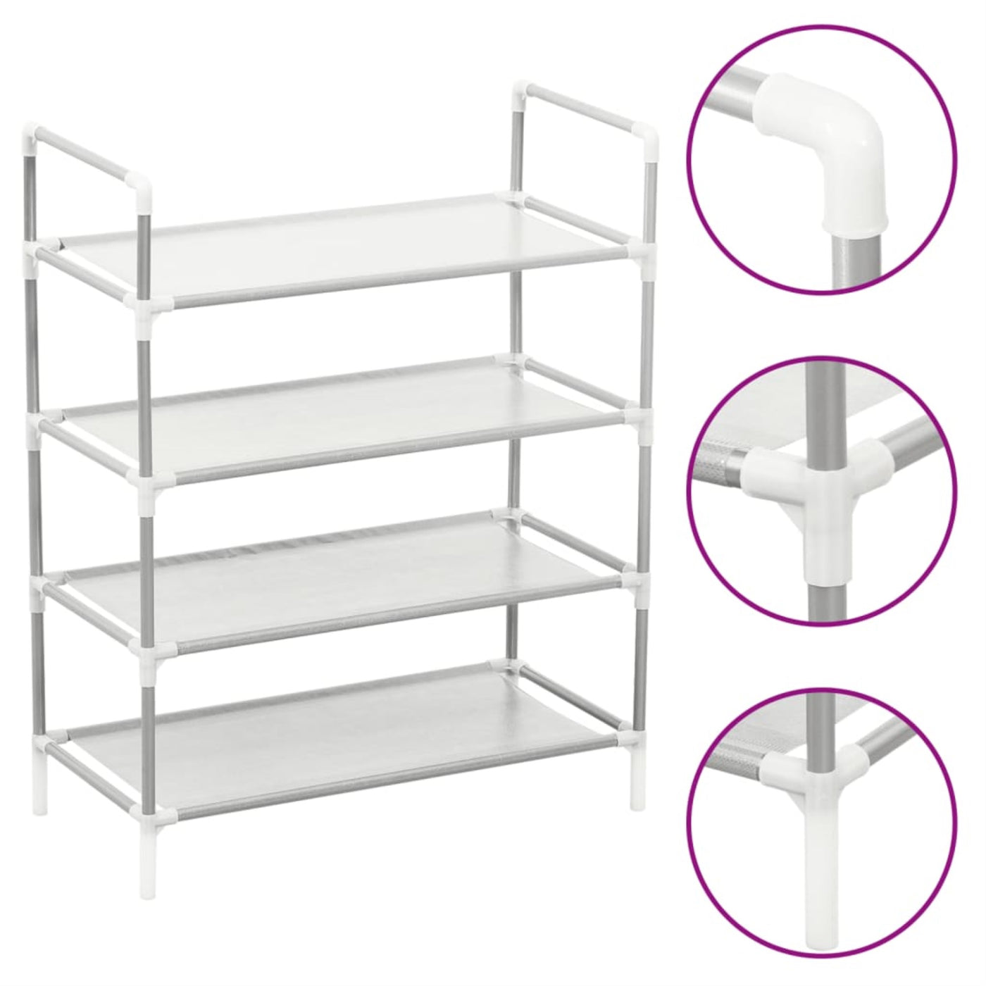 Vidaxl Shoe Rack With 4 Shelves Metal And Non-Woven Fabric Silver