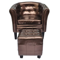 Vidaxl Tub Chair With Footstool Brown Faux Leather