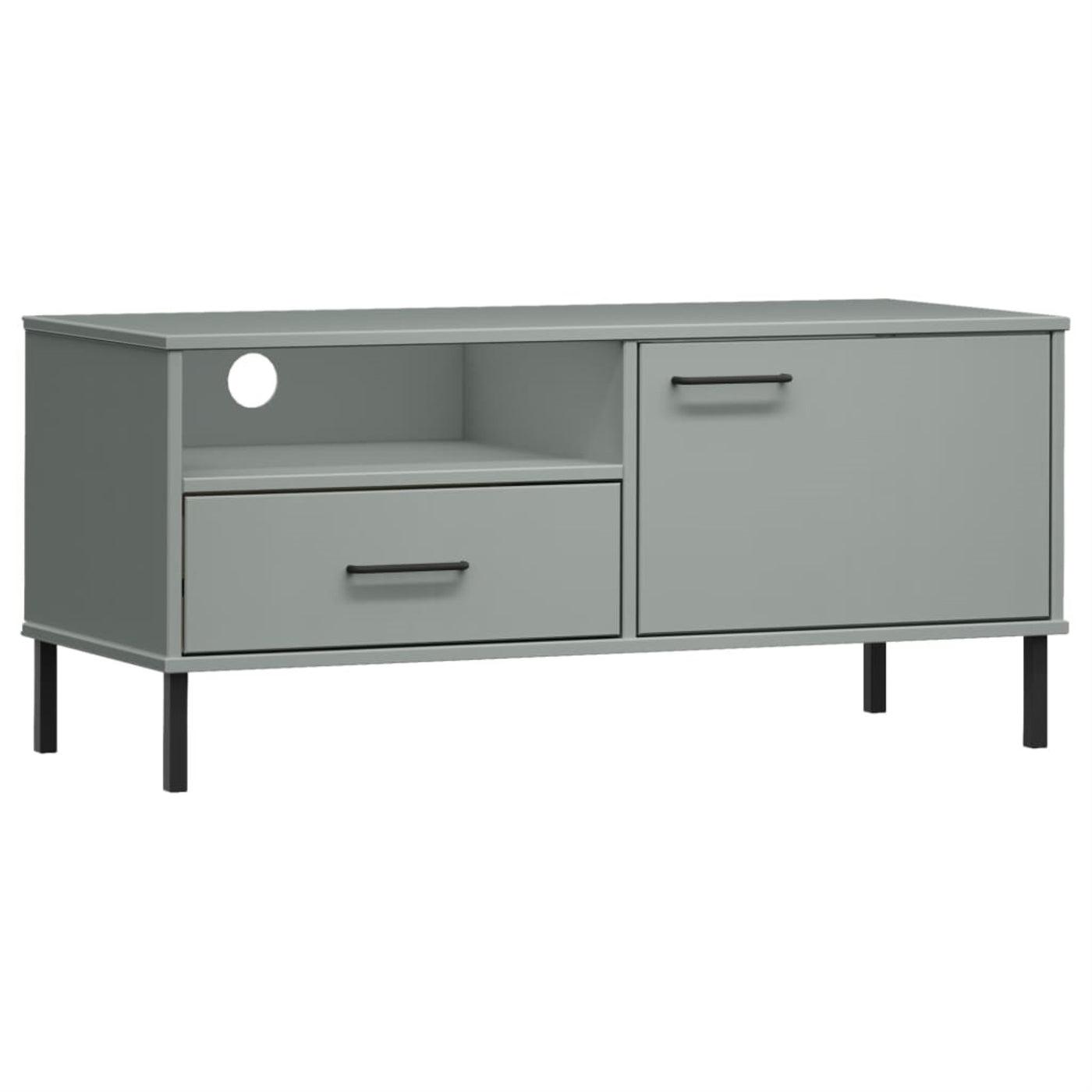 Vidaxl Tv Cabinet With Metal Legs Gray Solid Wood Pine Oslo