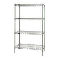 Wire Shelving Starter Kit, 42W X 14D X 54H, 600 - 800 Lb. Capacity, Includes (4) Wire Shelves And (4) Posts, Chrome Plated Finis