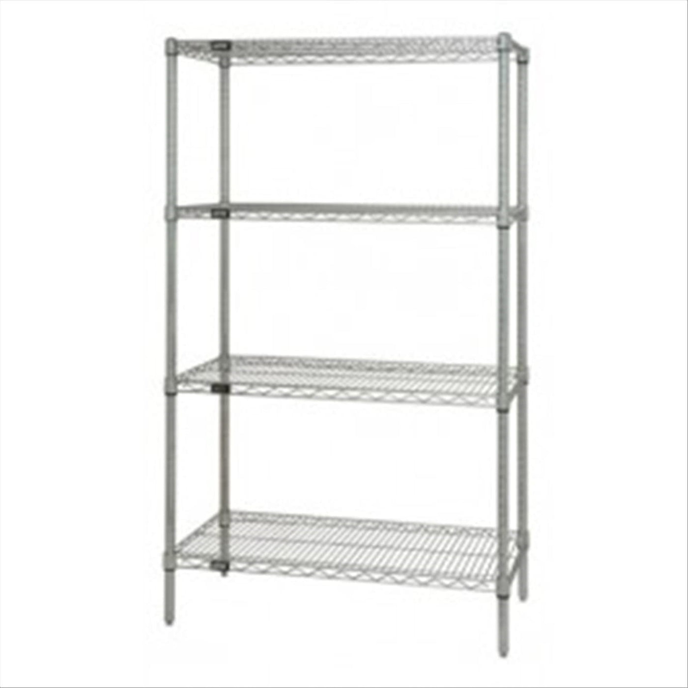 The Quantum Storage Systems Wr63-2460S Starter Kit Includes Four Wire Shelves, Four Posts, And Split Sleeves For The Assembly Of One Modular Four-Tier Wire Shelving Unit. Its Open Wire Design Offers Visibility Of Contents, Permits Air Circulation In The Work Environment, And Helps Resist Dust Build-Up. The Shelves And Posts Are Made Of Electropolished 304 Stainless Steel For Strength And To Resist Corrosion. The Wire Shelves Adjust In 1 Increments To Accommodate Items Of Varying Heights, And Have A Welded Construction Reinforced With Wire Trusses And Struts For Strength. The Posts Are Grooved At 1 Intervals To Help Guide Installation Of The Shelves At Desired Heights, And Come With Adjustable Levelers To Facilitate Use On Uneven Surfaces. Split Sleeves On The Posts Hold And Support The Shelves. This Starter Kit Has Been Manufactured To Meet National Sanitation Foundation/American National Standards Institute (Nsf/Ansi) Standard 2 For Use In Food Handling And Processing, Dry Storage Only.The Assembled Shelving Unit Measures 63 X 60 X 24 Inches (H X W X D). (H Is Height, The Vertical Distance From Lowest To Highest Point; W Is Width, The Horizontal Distance From Left To Right; D Is Depth, The Horizontal Distance From Front To Back.) It Has A 600 Lb. Per Shelf Capacity When The Weight Is Evenly Distributed Across The Shelf. Assembly Instructions Are Included, And No Tools Are Required.Quantum Storage Systems Manufactures Storage Bins And Systems, And Steel And Wire Shelving. The Company Is Headquartered In Miami, Fl. Whats In The Box? (4) Wire Shelf, Stainless Steel, 1 X 60 X 24 (H X W X D) (4) Post, Stainless Steel, 63 (H) (16) Split Sleeve