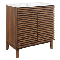 Yardlio Mid-Century Vanity Set: 30' Cabinet With Ceramic Basin & Adjustable Shelf