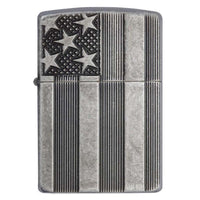 Zippo Windproof Lighter U.S. Flag Armor Case Antique Slilver Plate Finish