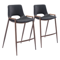 The Desi Counter Chair Has Mid Century Modern Urban Lines And Looks Great In Any Space. With A Heavy Duty Vinyl Covering And A Sturdy Steel Frame, This Counter Chair Fits In Any Home Kitchen, Dining Area, Or Bar. The Legs Are Finished In A Walnut Veneer Coating That Is Durable For Hospitality Use.